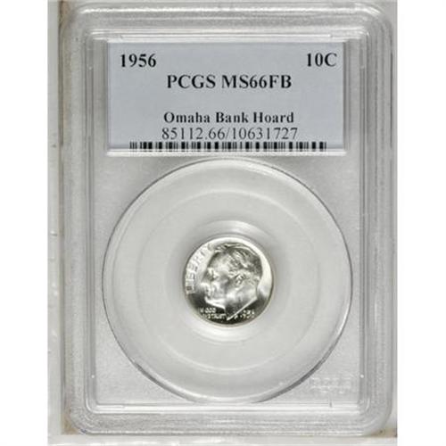 <B>1956 10C MS66 Full Bands PCGS.</B></I> Omaha Bank Hoard. PCGS Population (21/8). NGC Census: (0/0). Mintage: 108,640,000. (#85112)<BR><BR><B>Coin Engraver:</B> John R. Sinnock<BR><BR><b>Shipping:</b> Coins & Currency (<a target="_blank" href="http://www.heritageauctions.com/common/shipping.php">view shipping information</a>)