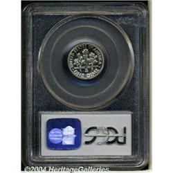 1956 10C PR67 Deep Cameo PCGS. While Deep Cameo halves from 1956 are not considered all that scarce, the dimes are much more challenging and are rarely seen with strong contrast between the fields and devices. This all-brilliant coin has exceptionally deep mirrors in the fields and the devices are heavily frosted, giving the coin its strong cameo appearance. Outstanding quality and rarely found in this grade or finer. Population: 27 in 67, 19 finer (3/04). <BR><BR><B>Important notice:</B> Heritage usually auctions material at the rate of 200-250 lots per hour. On some occasions eBay Live bid software or the Internet may not be able to keep up with the pace of the auction. We recommend placing a realistic absentee bid now as insurance to avoid disappointment. Occasionally the auctioneer may eliminate or reject an eBay Live bid, and the auctioneer may also reopen a lot after the close of the eBay live bidding (usually because we missed an audience bid), and may reject your bid even if it shows you as the winning bidder. By bidding via eBay Live, you agree that Heritage may award the lot to another bidder at its sole discretion under the circumstances described above or any other reasonable circumstances. Since eBay bids are not shown to us until we open the lot on the floor, we treat those bids just like floor bids. In most cases the floor responds before the eBay bid is presented to us, due to Internet lag time, so for consistency we have made it a policy that floor bids are always considered first over tie eBay live bids. Also please note that all Heritage lots purchased through eBay Live carry a 20% Buyer's Premium. Please make sure you read the Terms and Conditions before you bid. <BR><BR><B>IMPORTANT ANNOUNCEMENT ABOUT RESERVES:</B> Heritage now divulges all reserves on its web site 7 days before every auction. If you want to know whether the reserve on this lot has been met, and if not, what the reserve amount is, please visit this lot page on the HeritageCoin.com web site, or email: bid@HeritageGalleries.com