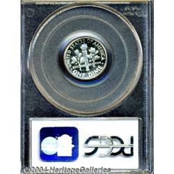 <B>1956<10C> PR68 Deep Cameo PCGS.</B></I> A razor-sharp specimen, with frosted devices and deeply-mirrored fields. Seemingly mark-free and hairline-free, as expected for this lofty grade. Population: 18 in 68 Deep Cameo, 1 finer (7/04).<BR><I>From The Velma & Bowie Lynch Collection, Part Four.</B></I> <BR><BR><B>Important notice:</B> Heritage usually auctions material at the rate of 200-250 lots per hour. On some occasions eBay Live bid software or the Internet may not be able to keep up with the pace of the auction. We recommend placing a realistic absentee bid now as insurance to avoid disappointment. Occasionally the auctioneer may eliminate or reject an eBay Live bid, and the auctioneer may also reopen a lot after the close of the eBay live bidding (usually because we missed an audience bid), and may reject your bid even if it shows you as the winning bidder. By bidding via eBay Live, you agree that Heritage may award the lot to another bidder at its sole discretion under the circumstances described above or any other reasonable circumstances. Since eBay bids are not shown to us until we open the lot on the floor, we treat those bids just like floor bids. In most cases the floor responds before the eBay bid is presented to us, due to Internet lag time, so for consistency we have made it a policy that floor bids are always considered first over tie eBay live bids. Also please note that all Heritage lots purchased through eBay Live carry a 20% Buyer's Premium. Please make sure you read the Terms and Conditions before you bid. </span></font></tr></table></td></tr></table>