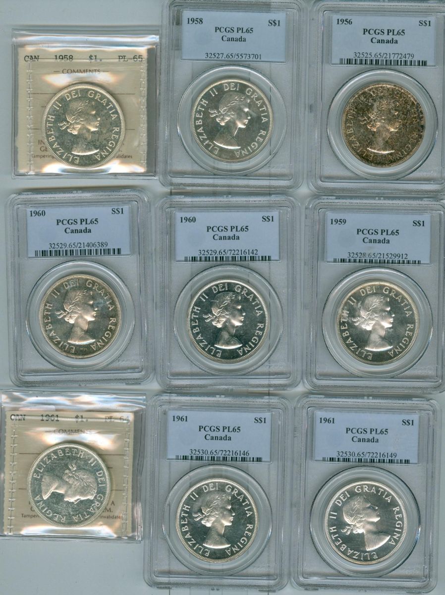 1956, 1958 (2), 1959, 1960 (2)& 1961 (2) $1 PCGS PL65 and 19
