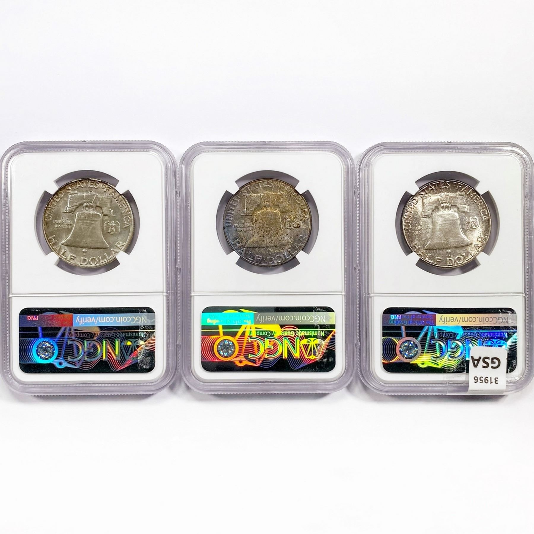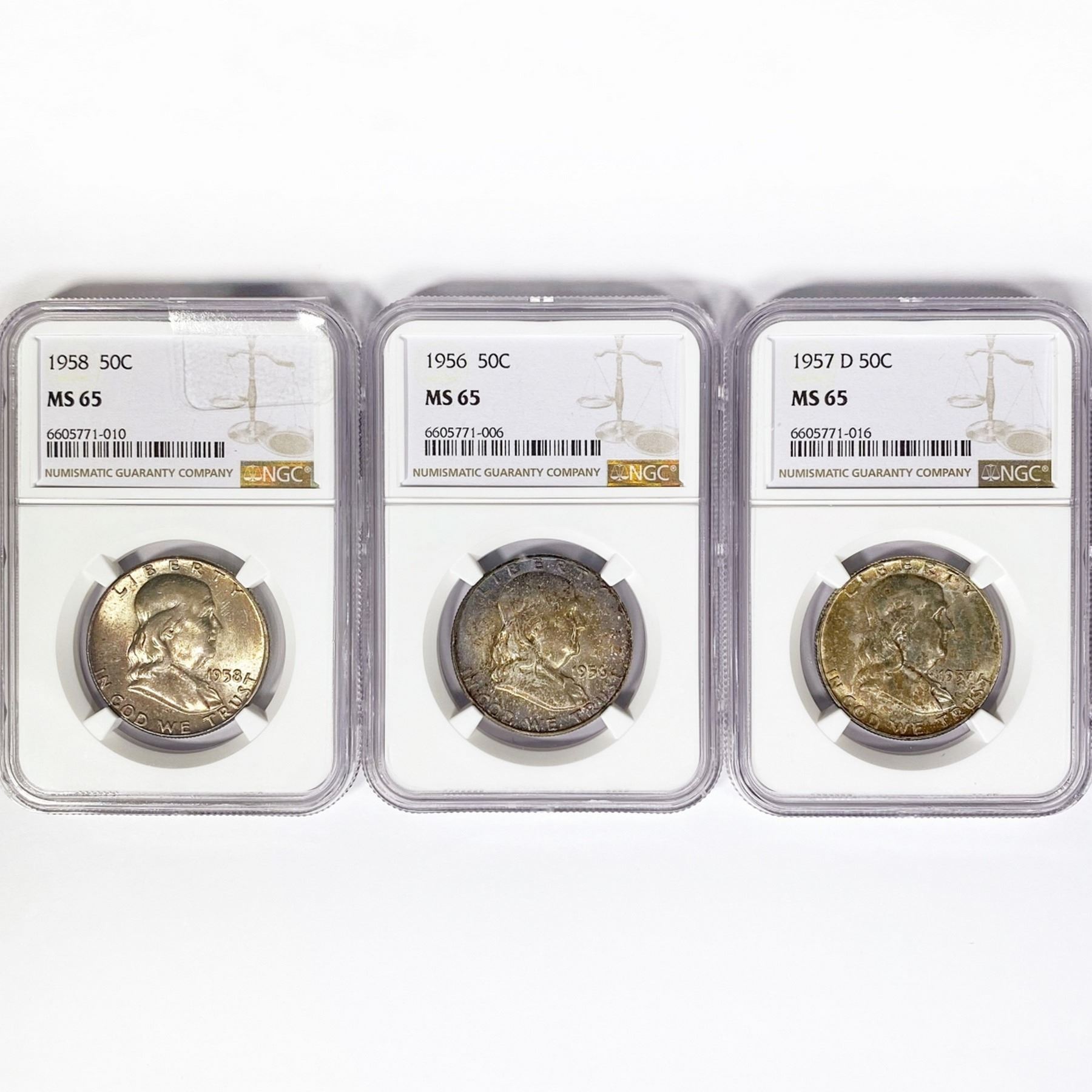 1956-1958 Set (3) Franklin Half Dollar NGC MS65
