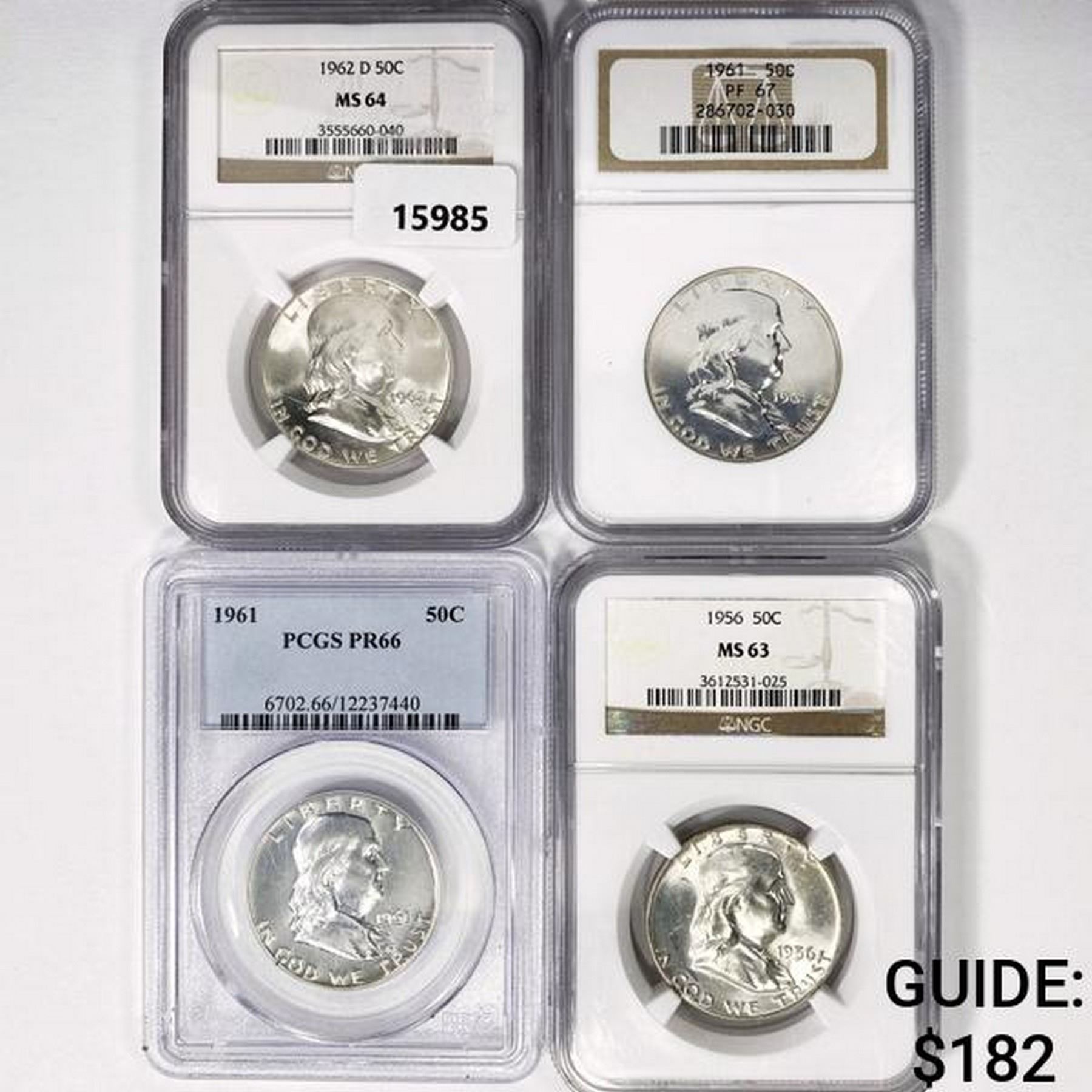 1956-1962 Set (4) Franklin Half Dollar PF, MS, PR