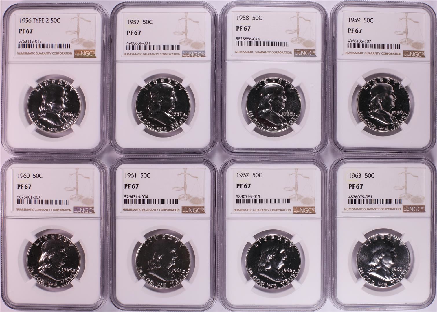 One 1956-1963 Proof Franklin Half Dollar Coins NGC PF67. NGC Certified.
