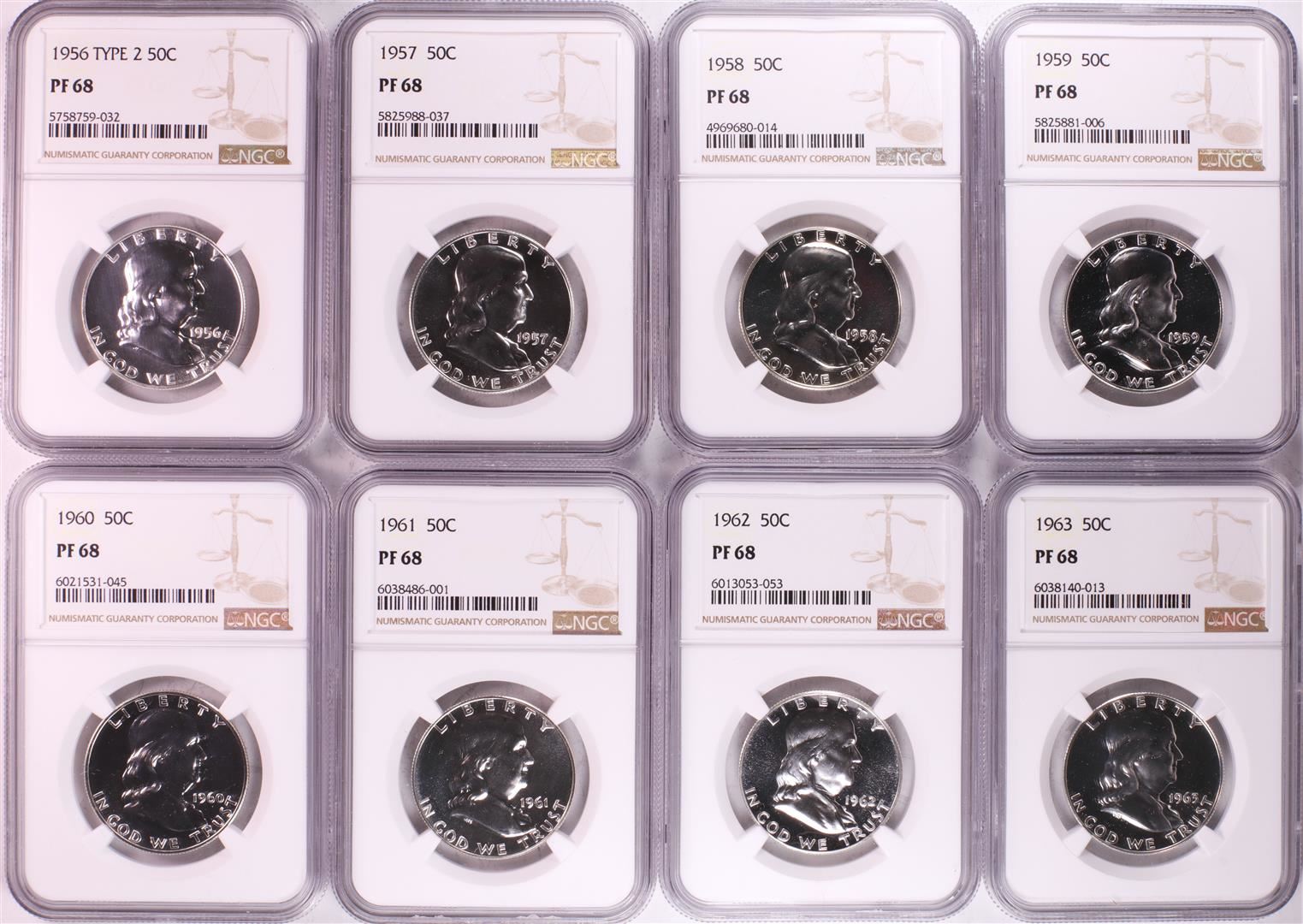 One 1956-1963 Proof Franklin Half Dollar Coins NGC PF68. NGC Certified.