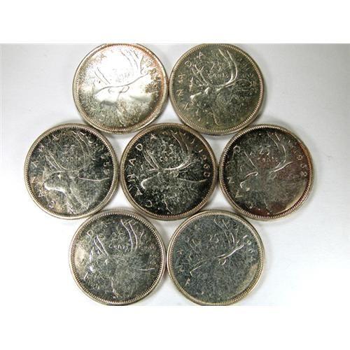 Canada Twenty-Five Cents 1956, 1957, 1959, 1960, 1962, 1963 and 1964, all Choice to Very Choice Proof-Like with light to heavy cameos, pale to lightly toned