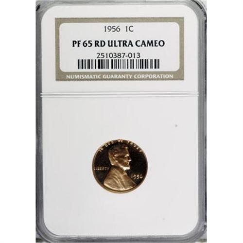 <B>1956 1C PR65 Deep Cameo NGC.</B></I> NGC Census: (4/19). PCGS Population (12/54). Numismedia Wsl. Price for NGC/PCGS coin in PR65: $39. (#93377)<BR><BR><b>Shipping:</b> Coins & Currency (<a target="_blank" href="http://www.heritageauctions.com/common/shipping.php">view shipping information</a>)