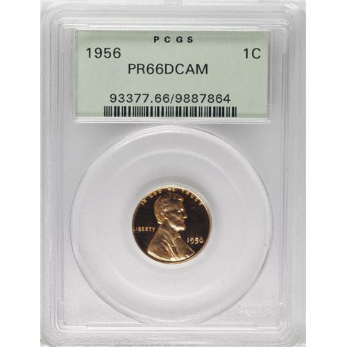 <B>1956 1C PR66 Deep Cameo PCGS.</B></I> This outstanding Cameo displays gorgeous orange-gold surfaces that are immaculately preserved. The design features are well brought up.<BR><BR><b>Shipping:</b> Coin/Currency (<a target="_blank" href="http://www.heritageauctions.com/common/shipping.php">view shipping information</a>)
