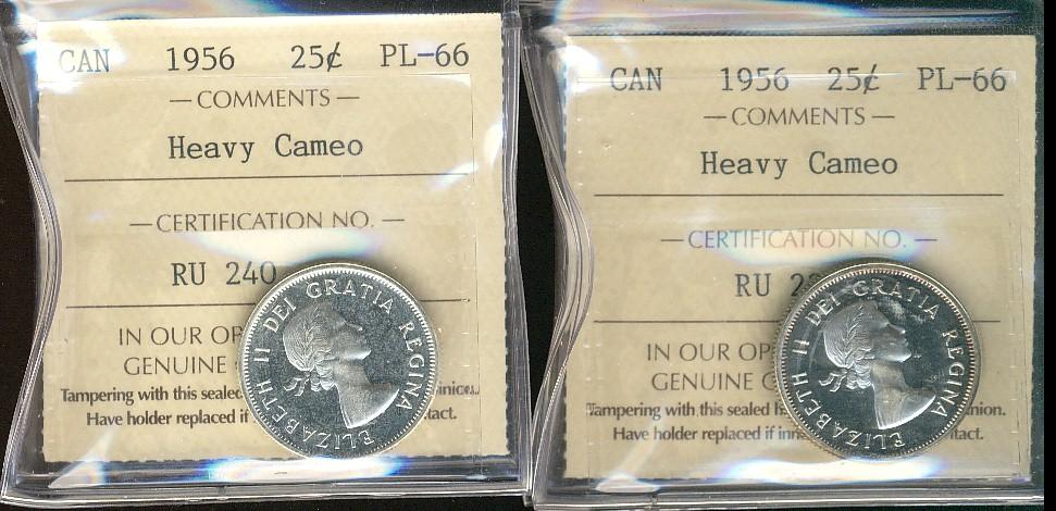 1956 25¢ ICCS PL66 Heavy Cameo, Lot of 2 coins.