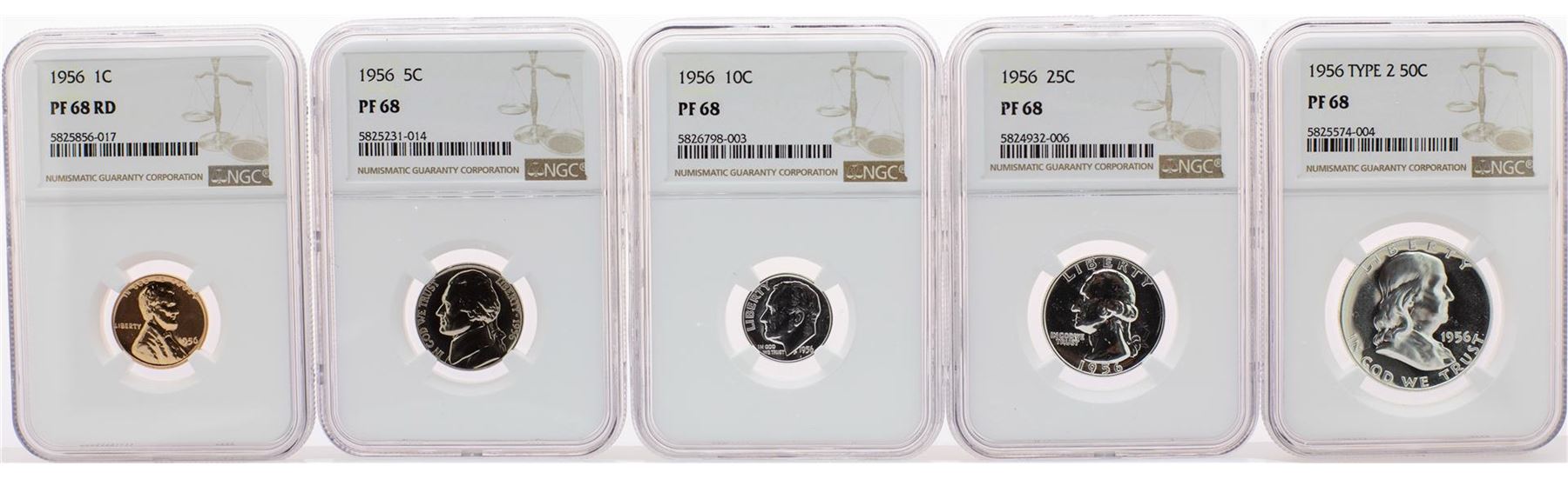 One 1956 (5) Coin Proof Set Graded NGC PF68. NGC Certified.
