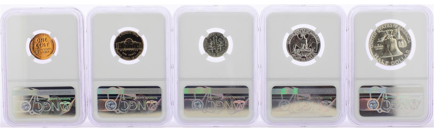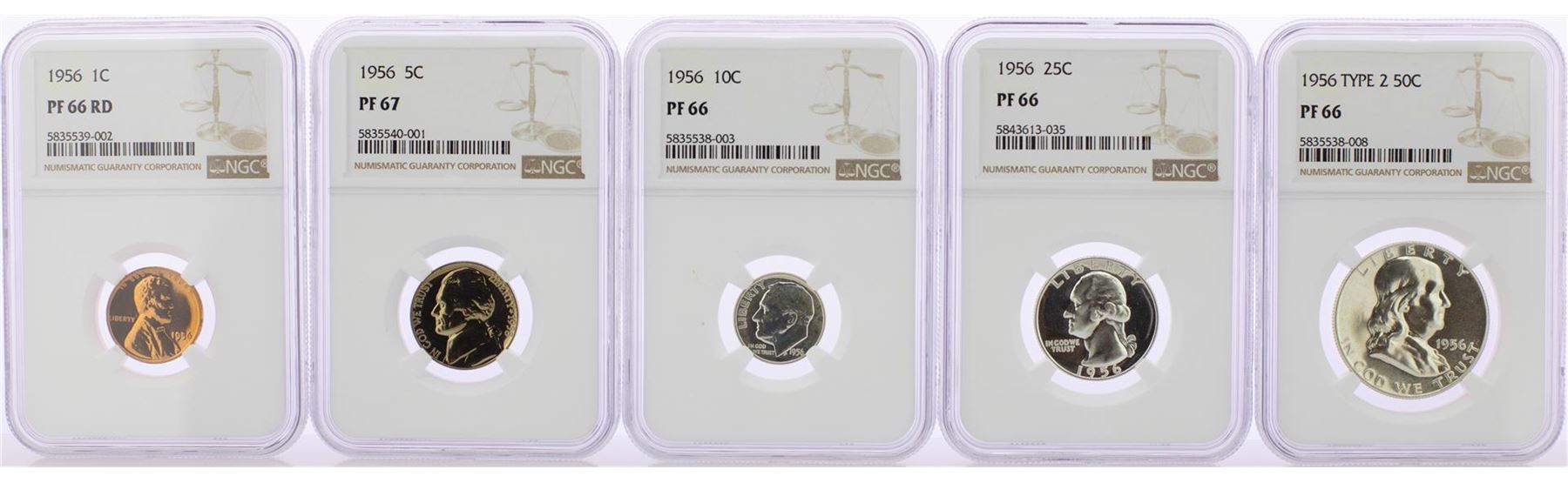 One 1956 (5) Coin Proof Set NGC Graded PF66RD/PF66/PF67. NGC Certified.