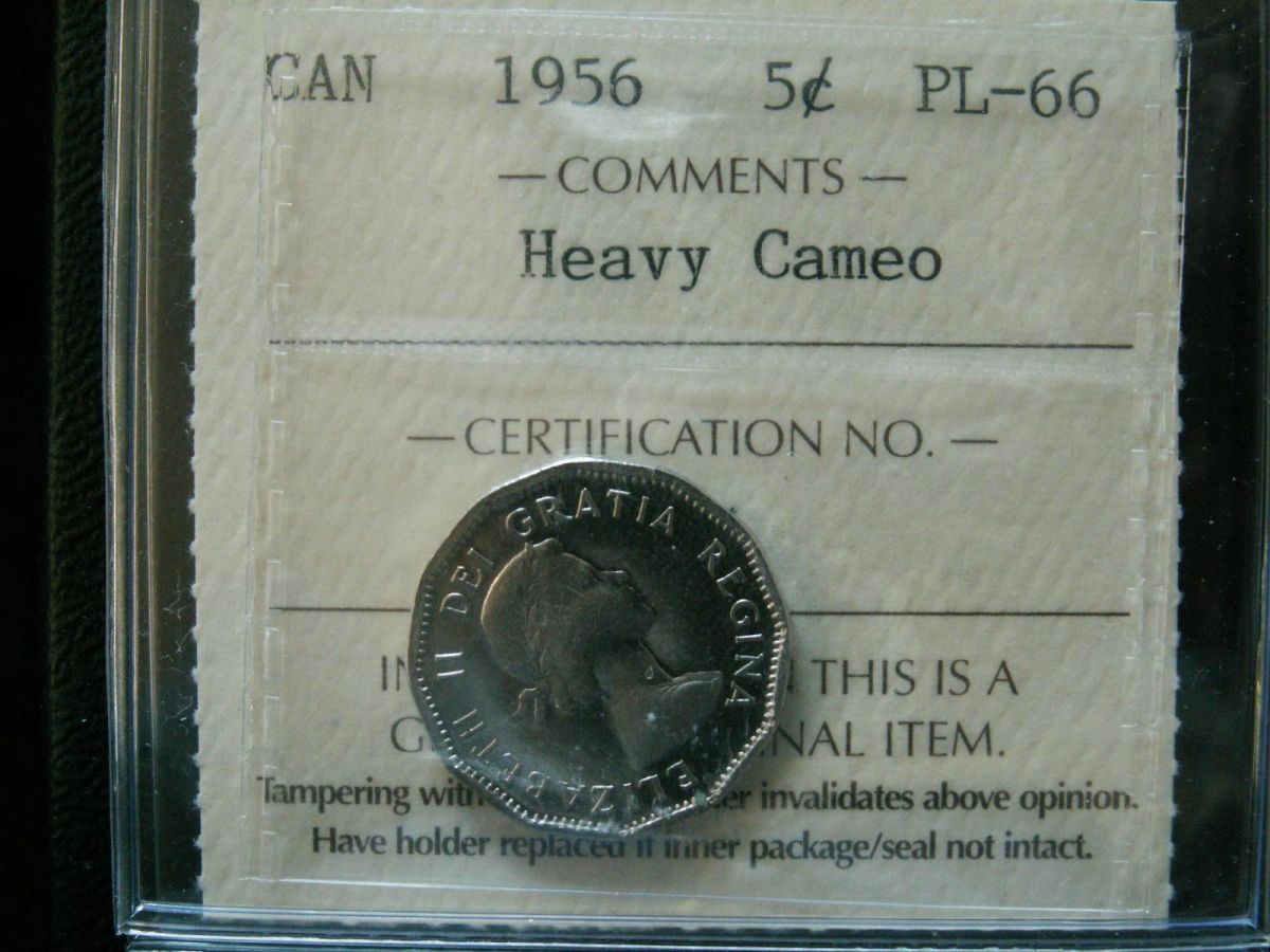 1956 5¢ ICCS PL66 Heavy Cameo. Tied for finest graded.