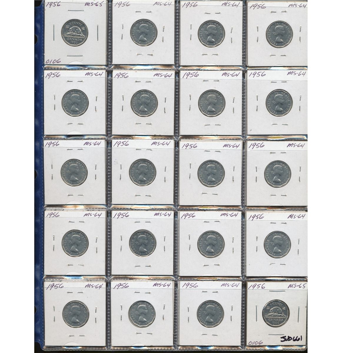1956 5¢ Partial Roll; includes 36 pieces all in 2x2's. MS63 to MS65 for grades. Should be viewed.