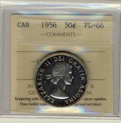 1956 50¢ ICCS PL66. Light rim tones.