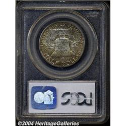 <B>1956<50C> MS66 Full Bell Lines PCGS.</B></I> Variegated patination resides over both sides of this high end and exceptionally well struck piece. <BR><BR><B>Important notice:</B> Heritage usually auctions material at the rate of 200-250 lots per hour. On some occasions eBay Live bid software or the Internet may not be able to keep up with the pace of the auction. We recommend placing a realistic absentee bid now as insurance to avoid disappointment. Occasionally the auctioneer may eliminate or reject an eBay Live bid, and the auctioneer may also reopen a lot after the close of the eBay live bidding (usually because we missed an audience bid), and may reject your bid even if it shows you as the winning bidder. By bidding via eBay Live, you agree that Heritage may award the lot to another bidder at its sole discretion under the circumstances described above or any other reasonable circumstances. Since eBay bids are not shown to us until we open the lot on the floor, we treat those bids just like floor bids. In most cases the floor responds before the eBay bid is presented to us, due to Internet lag time, so for consistency we have made it a policy that floor bids are always considered first over tie eBay live bids. Also please note that all Heritage lots purchased through eBay Live carry a 20% Buyer's Premium. Please make sure you read the Terms and Conditions before you bid. </span></font></tr></table></td></tr></table>
