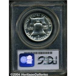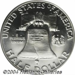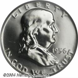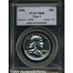 <B>1956<50C> Type One PR68 PCGS.</B></I> Breen-5241. A very scarce reverse die variety found on only about 5 percent of the 1956 proof Halves. Completely brilliant and untoned with no mentionable detractions as would be expected of the near pristine assigned grade. Population: 47 in 68, 1 finer (3/04).<BR><I>From the JFS Collection.</B></I> <BR><BR><B>Important notice:</B> Heritage usually auctions material at the rate of 200-250 lots per hour. On some occasions eBay Live bid software or the Internet may not be able to keep up with the pace of the auction. We recommend placing a realistic absentee bid now as insurance to avoid disappointment. Occasionally the auctioneer may eliminate or reject an eBay Live bid, and the auctioneer may also reopen a lot after the close of the eBay live bidding (usually because we missed an audience bid), and may reject your bid even if it shows you as the winning bidder. By bidding via eBay Live, you agree that Heritage may award the lot to another bidder at its sole discretion under the circumstances described above or any other reasonable circumstances. Since eBay bids are not shown to us until we open the lot on the floor, we treat those bids just like floor bids. In most cases the floor responds before the eBay bid is presented to us, due to Internet lag time, so for consistency we have made it a policy that floor bids are always considered first over tie eBay live bids. Also please note that all Heritage lots purchased through eBay Live carry a 20% Buyer's Premium. Please make sure you read the Terms and Conditions before you bid. </span></font></tr></table></td></tr></table>