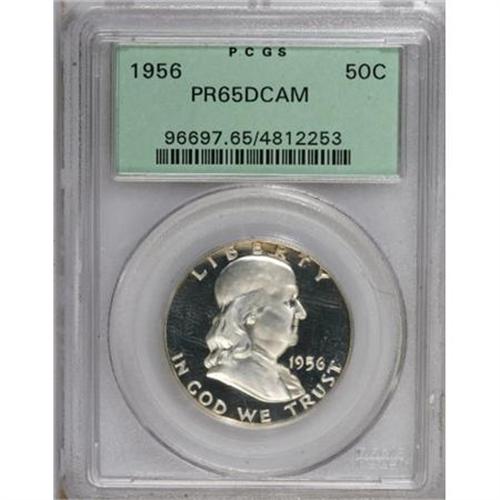 <B>1956 50C Type Two PR65 Deep Cameo PCGS.</B></I> PCGS Population (18/672). NGC Census: (3/225). Numismedia Wsl. Price for NGC/PCGS coin in PR65: $70. (#96697)<BR><BR><b>Shipping:</b> Coins & Currency (<a target="_blank" href="http://www.heritageauctions.com/common/shipping.php">view shipping information</a>)