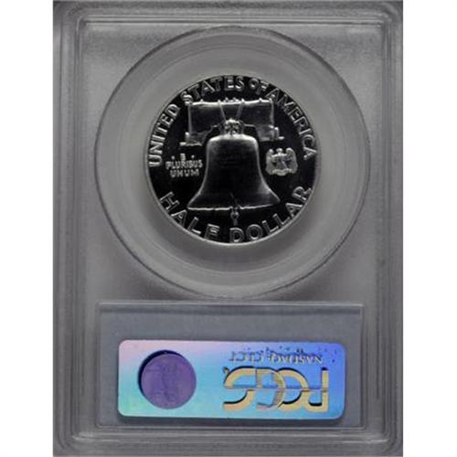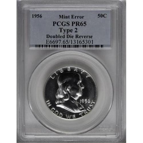 <B>1956 50C Type Two--Double Die Reverse--PR65 PCGS.</B></I> PCGS Population (1184/3732). NGC Census: (229/3311). Mintage: 669,384. Numismedia Wsl. Price for NGC/PCGS coin in PR65: $28. (#6697)<BR><BR><B>Coin Engraver:</B> John R. Sinnock<BR><BR><b>Shipping:</b> Coins & Currency (<a target="_blank" href="http://www.heritageauctions.com/common/shipping.php">view shipping information</a>)