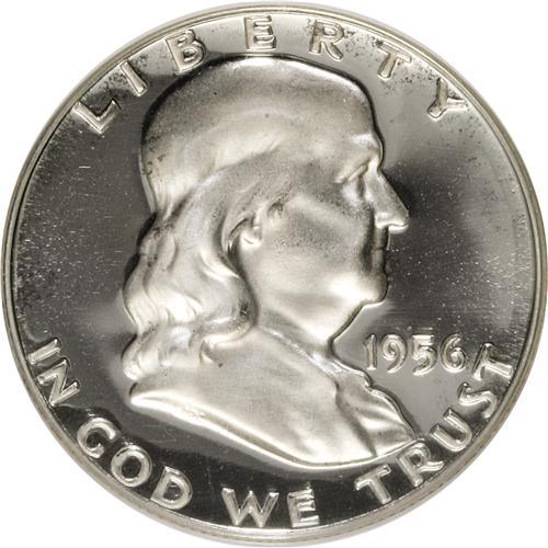<B>1956 50C Type Two PR68 Deep Cameo NGC.</B></I> NGC Census: (262/16). PCGS Population (346/39). Numismedia Wsl. Price for NGC/PCGS coin in PR68: $400. (#96697)<BR><BR><b>Shipping:</b> Coins & Currency (<a target="_blank" href="http://www.heritageauctions.com/common/shipping.php">view shipping information</a>)