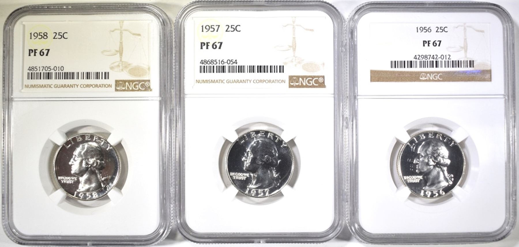 1956, 57 & 58 WASHINGTON QUARTERS NGC PF-67