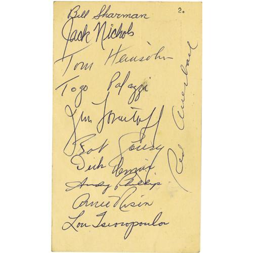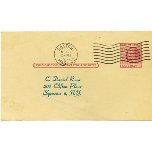 <B>1956-57 Boston Celtics Team Signed Government Postcard.</B></I> The mighty Celtics would deliver the first of sixteen NBA titles to Boston this season, topping the St. Louis Hawks four games to three in the NBA Finals. The spectacular talent of that team included both the League's MVP (Bob Cousy) and the Rookie of the Year (Tom Heinsohn), each of whom is present among the eleven 10/10 blue ink autographs on this postcard. The balance of the signatures: Sharman, Nichols, Palazzi, Loscutoff, Hemric, Phillip, Risen, Tsioropoulos and coach Red Auerbach. A November 1956 cancellation from the Boston post office only adds to the appeal. No creases, tears or stains. NRMT. <I>LOA from PSA/DNA.</B></I>