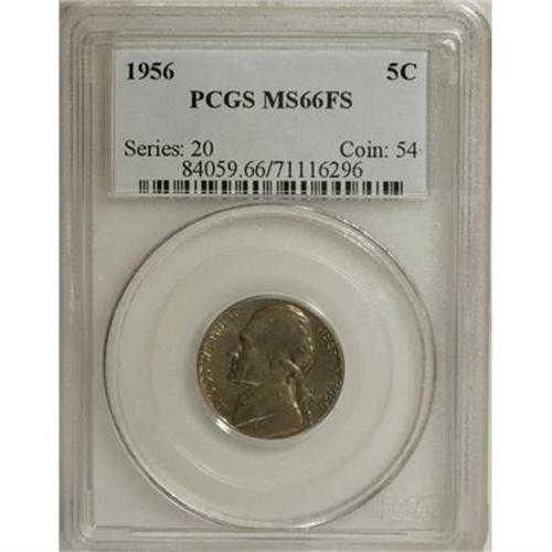 <B>1956 5C MS66 Full Steps PCGS.</B></I> PCGS Population (42/1). NGC Census: (16/2). (#84059)<BR><BR><b>Shipping:</b> Coins & Currency (<a target="_blank" href="http://www.heritageauctions.com/common/shipping.php">view shipping information</a>)