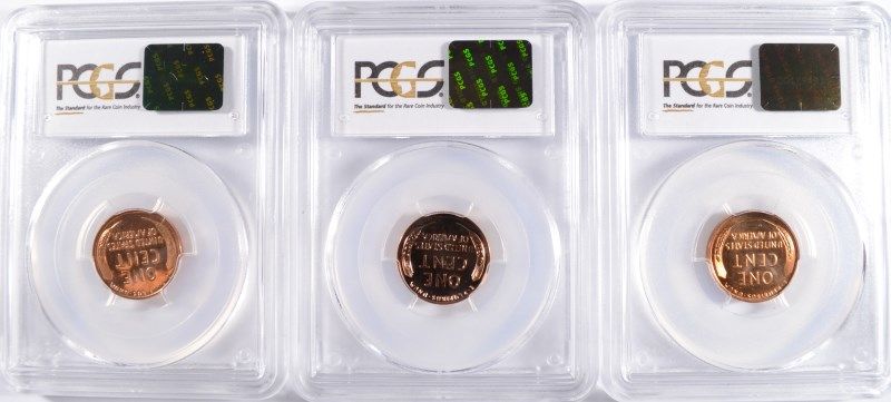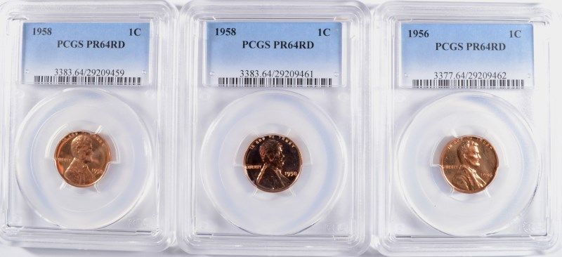 1956 AND ( 2 ) 1958 LINCOLN CENTS, ALL PCGS PROOF-64 RED