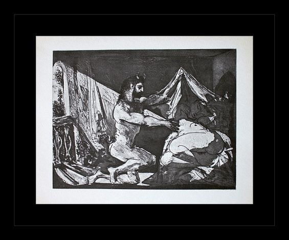 PABLO PICASSO "SATYR AND SLEEPING WOMAN" - VINTAGE FIRST EDITION LITHOGRAPH AFTER THE SUITE VOLLARD ETCHING - PRINTED IN 1956 - PUBLISHED BY HARRY N. ABRAMS / NEW YORK - PRINTED IN GERMANY - PROFESSIONALLY FRAMED AND MATTED - SHEET SIZE 9"X11"