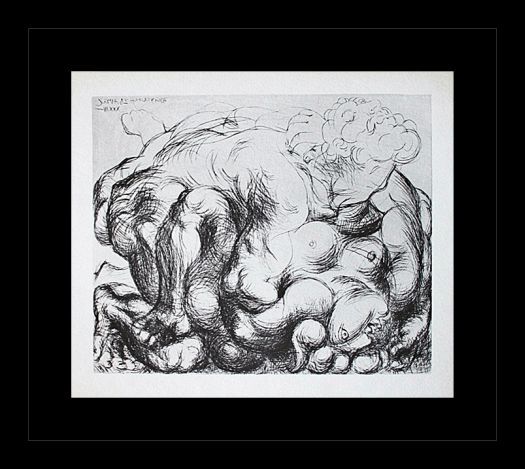PABLO PICASSO "EMBRACE III" - VINTAGE FIRST EDITION LITHOGRAPH AFTER THE SUITE VOLLARD ETCHING - PRINTED IN 1956 - PUBLISHED BY HARRY N. ABRAMS / NEW YORK - PRINTED IN GERMANY - PROFESSIONALLY FRAMED AND MATTED - SHEET SIZE 9"X11"