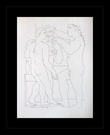 PABLO PICASSO "THREE NUDE MEN STANDING" - VINTAGE FIRST EDITION LITHOGRAPH AFTER THE SUITE VOLLARD ETCHING - PRINTED IN 1956 - PUBLISHED BY HARRY N. ABRAMS / NEW YORK - PRINTED IN GERMANY - PROFESSIONALLY FRAMED AND MATTED - SHEET SIZE 9"X11"