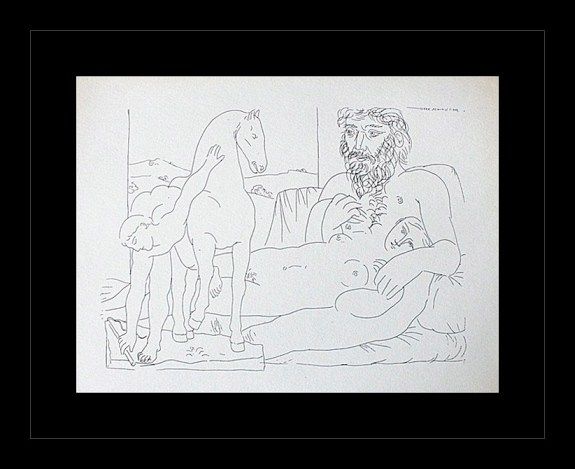 PABLO PICASSO "SCULPTOR, MODEL, SCULPTURE OF A HORSE AND YOUTH" - VINTAGE FIRST EDITION LITHOGRAPH AFTER THE SUITE VOLLARD ETCHING - PRINTED IN 1956 - PUBLISHED BY HARRY N. ABRAMS / NEW YORK - PRINTED IN GERMANY - PROFESSIONALLY FRAMED AND MATTED - SHEET SIZE 9"X11"
