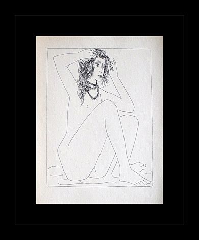 PABLO PICASSO " NUDE CROWNING HERSELF WITH FLOWERS"  - VINTAGE FIRST EDITION LITHOGRAPH AFTER THE SUITE VOLLARD ETCHING - PRINTED IN 1956 - PUBLISHED BY HARRY N. ABRAMS / NEW YORK - PRINTED IN GERMANY - PROFESSIONALLY FRAMED AND MATTED - SHEET SIZE 9"X11"