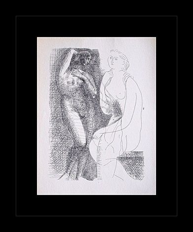 PABLO PICASSO "NUDE BEFORE A STATUE" - VINTAGE FIRST EDITION LITHOGRAPH AFTER THE SUITE VOLLARD ETCHING - PRINTED IN 1956 - PUBLISHED BY HARRY N. ABRAMS / NEW YORK - PRINTED IN GERMANY - PROFESSIONALLY FRAMED AND MATTED - SHEET SIZE 9"X11"