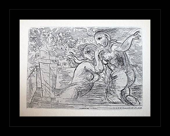 PABLO PICASSO "NUDES BATHING" - VINTAGE FIRST EDITION LITHOGRAPH AFTER THE SUITE VOLLARD ETCHING - PRINTED IN 1956 - PUBLISHED BY HARRY N. ABRAMS / NEW YORK - PRINTED IN GERMANY - PROFESSIONALLY FRAMED AND MATTED - SHEET SIZE 9"X11"