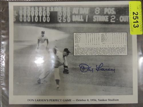 1956 BASEBALL PERFECT GAME PRINT AUTOGRAPHED: DON LARSEN. NO COA. AS SHOWN. VIEW PICTURE FOR DETAIL. PLEASE BE ADVISED, AND INFORMED REGARDING SIGNATURES OR AUTOGRAPHS THAT WE SELL AT AUCTION: WE ARE NOT AUTHENTICATORS, AND WE DO NOT AUTHENTICATE, OR VALIDATE ANY AUTOGRAPHS OR SIGNATURES THAT WE OFFER AT AUCTION. SOME AUTOGRAPHS OR SIGNATURES MAY COME WITH AN AUTHENTICATION FROM ANY ONE OF LITERALLY HUNDREDS OF AUTHENTICATORS ACROSS THE COUNTRY, AND AROUND THE WORLD. WE DO NOT ENDORSE ANY AUTHENTICATOR, NOR DO WE GUARANTEE THAT ANY AUTOGRAPH OR SIGNATURE IS AUTHENTIC, OR THAT IT WILL PASS AUTHENTICATION BY ANY AUTHENTICATOR. ALL AUTOGRAPHS OR SIGNATURES ARE SOLD