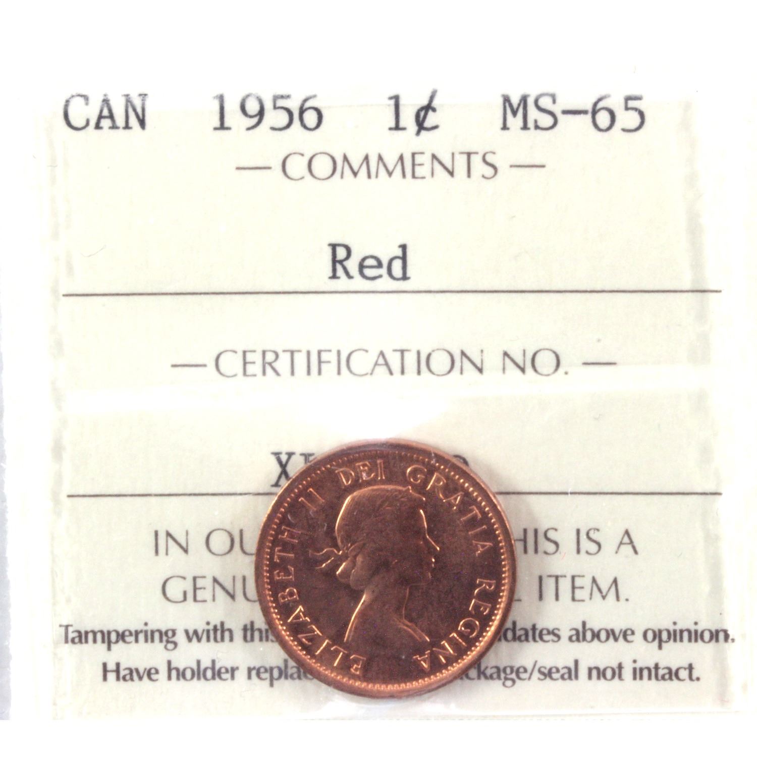 1956 Canada 1-cent ICCS Certified MS-65 Red.