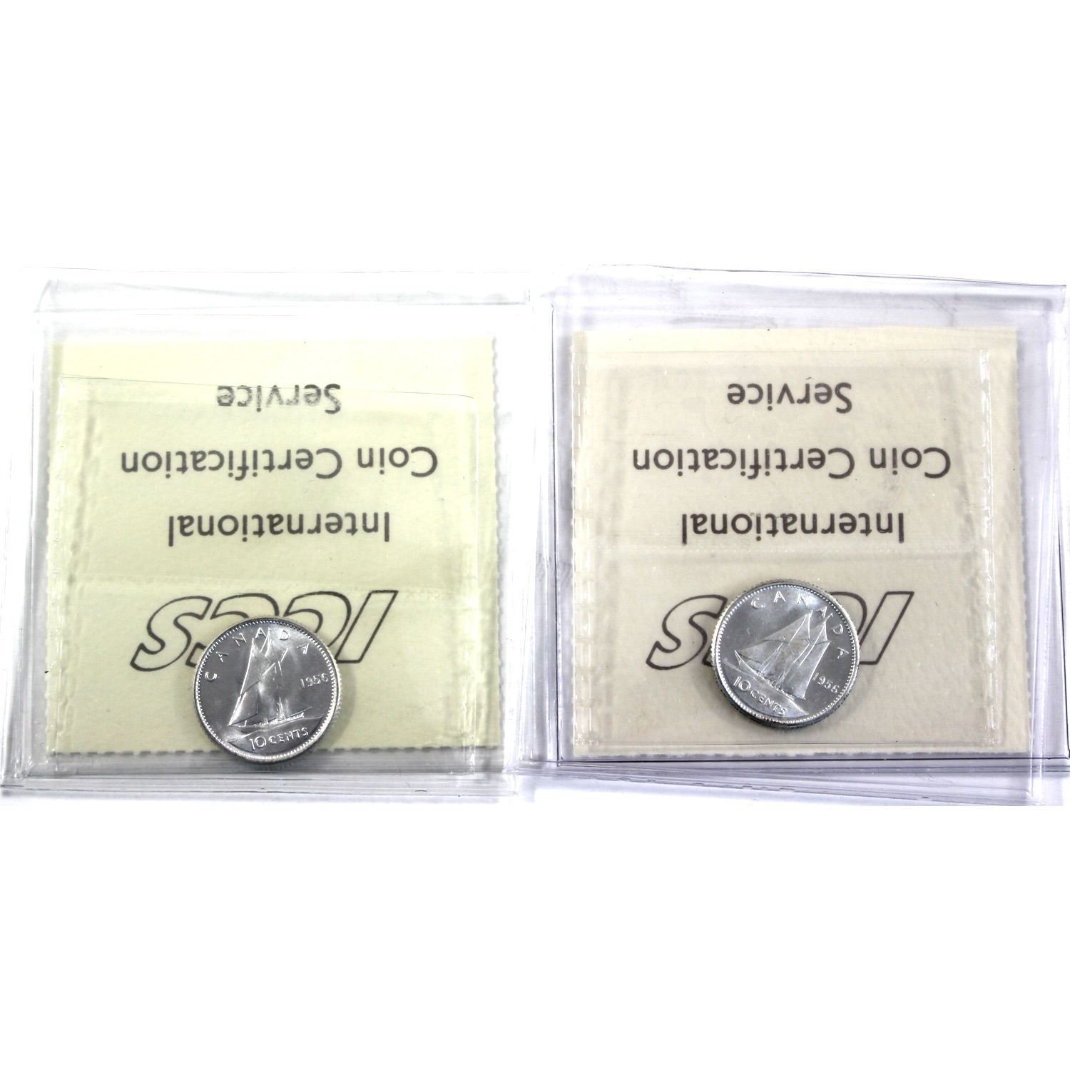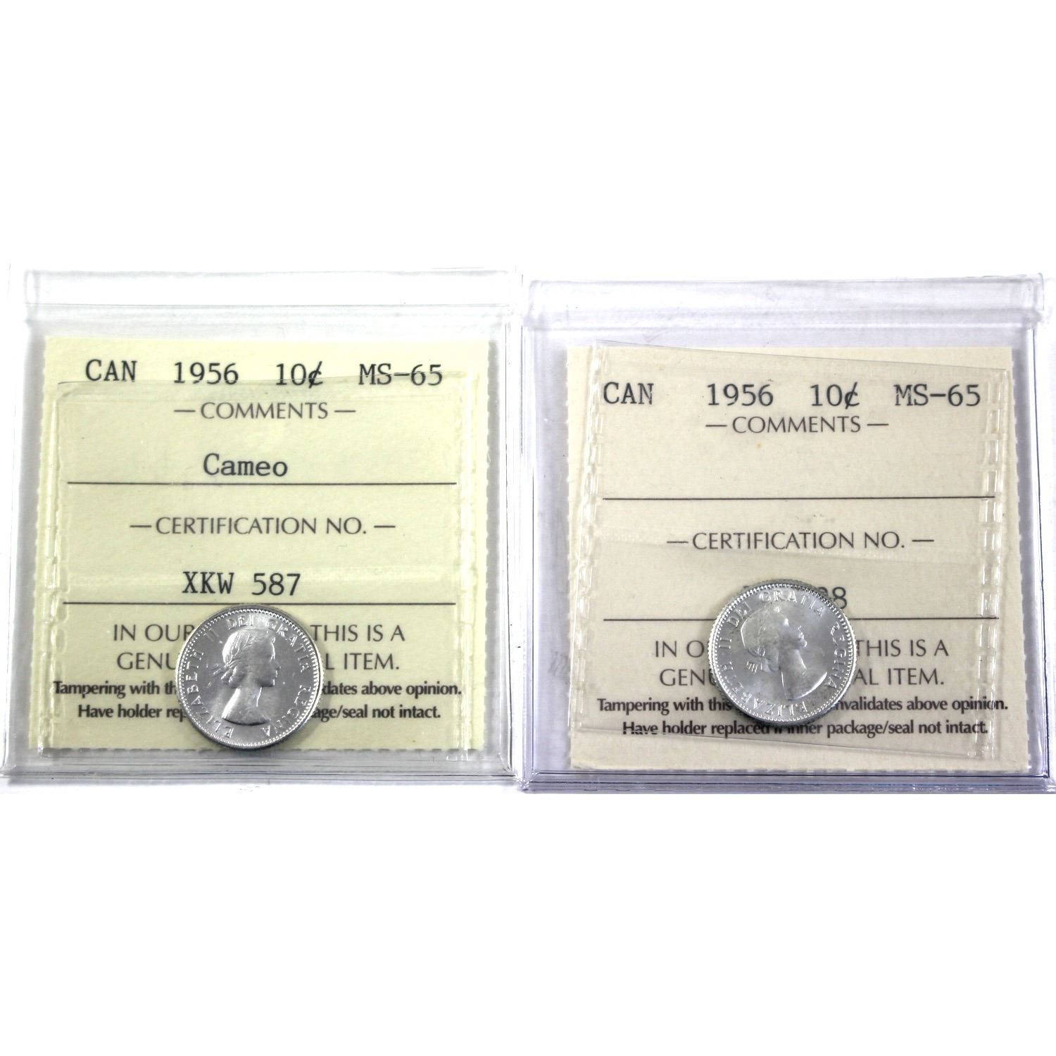 1956 Canada 10-cent & 10-cent Cameo ICCS Certified MS-65. 2pcs