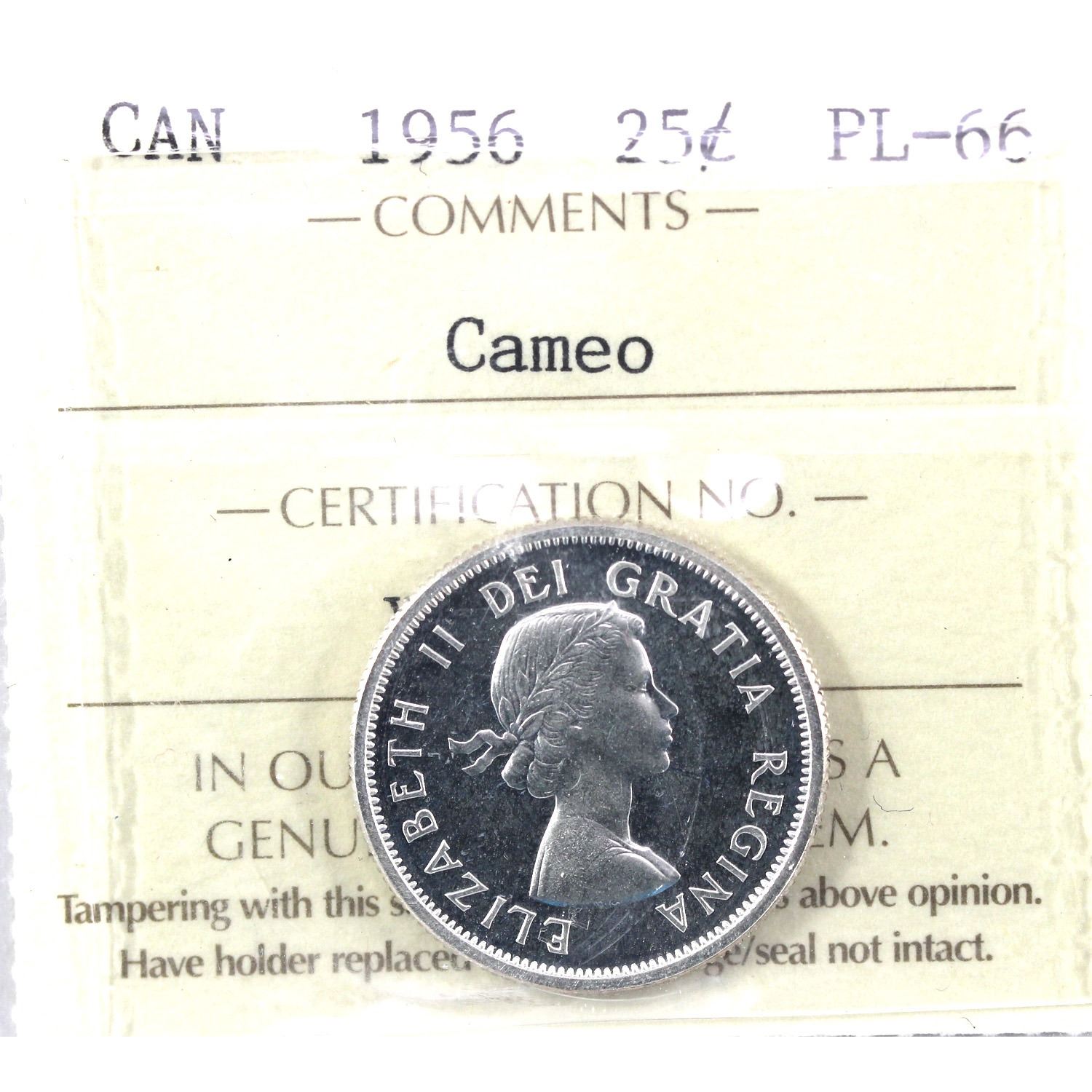 1956 Canada 25-cent ICCS Certified PL-66 Cameo.