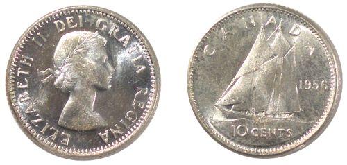 0192 - 1956 Canada Ten Cents-ICCS MS65Cameo
