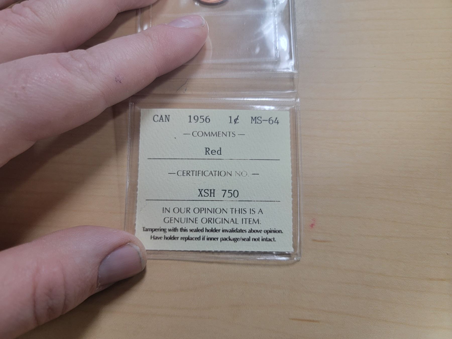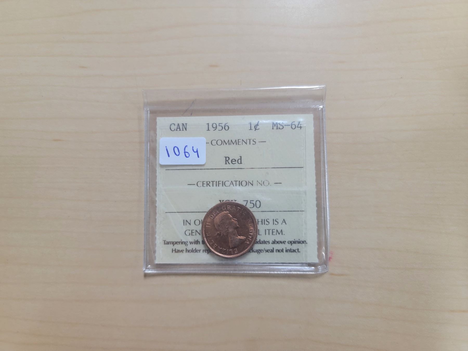 1956 Canadian One Cent ICCS graded MS-64 "red"