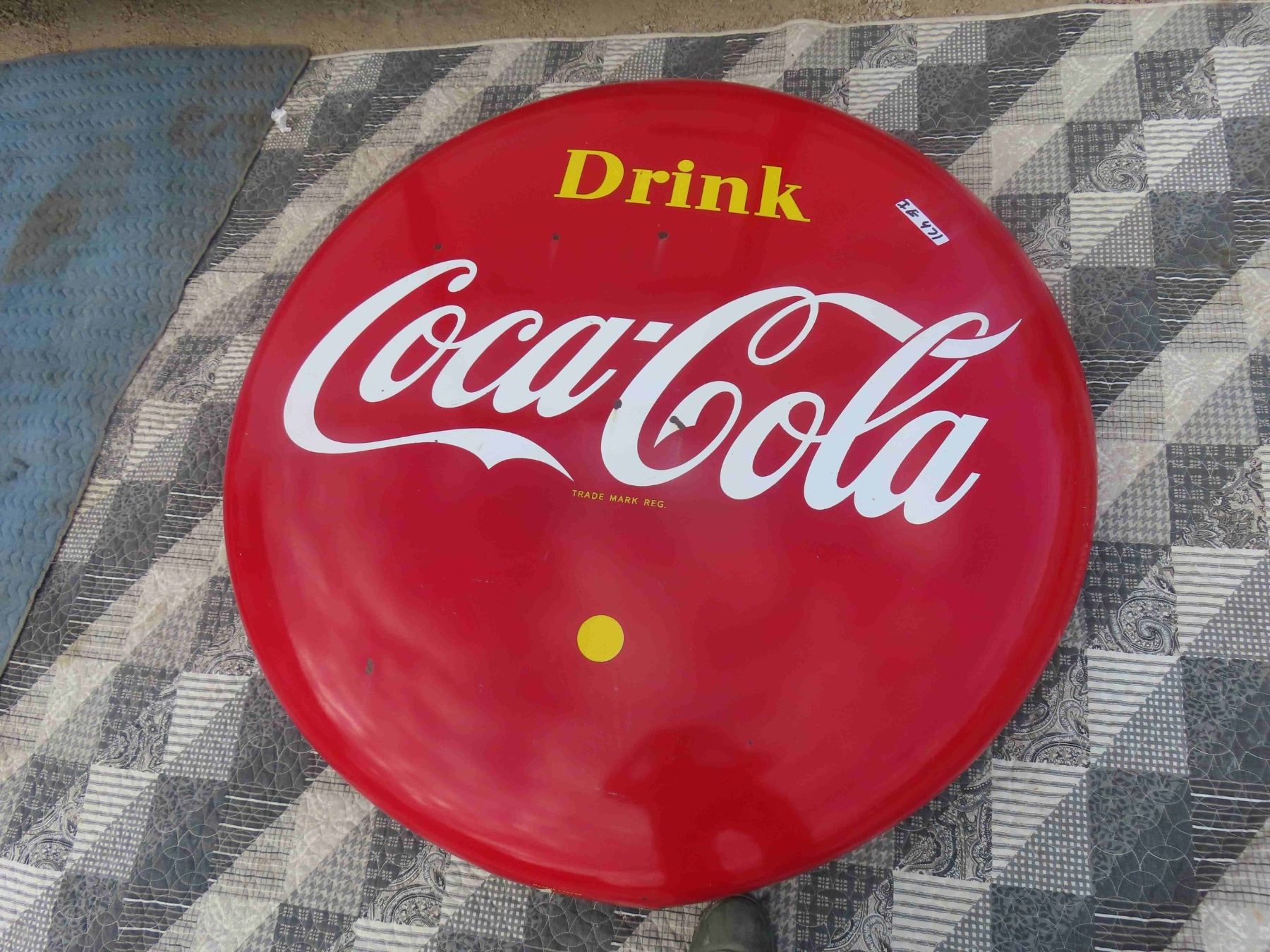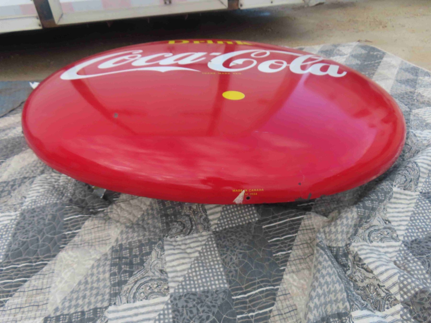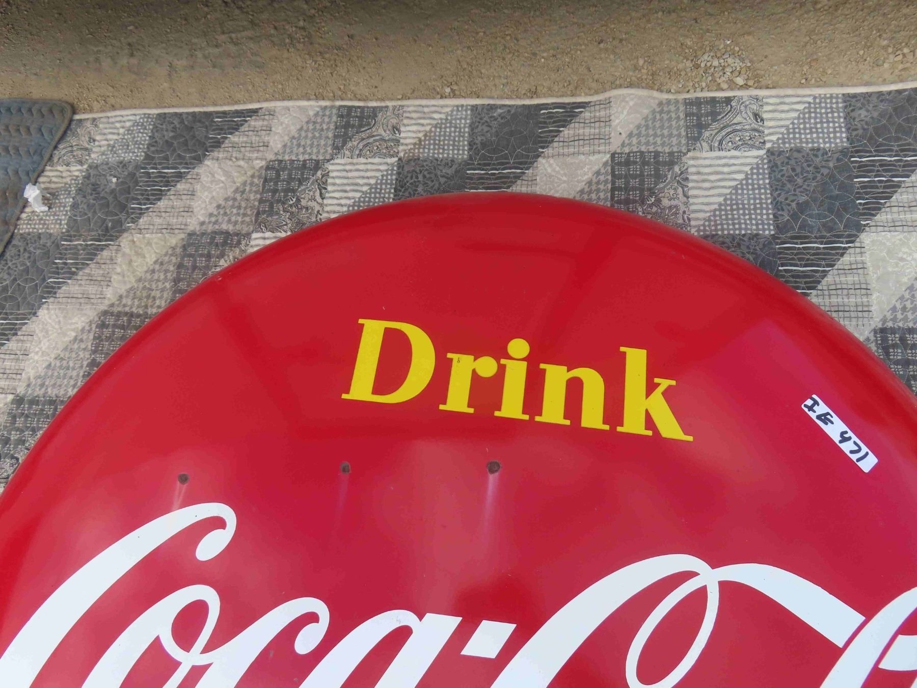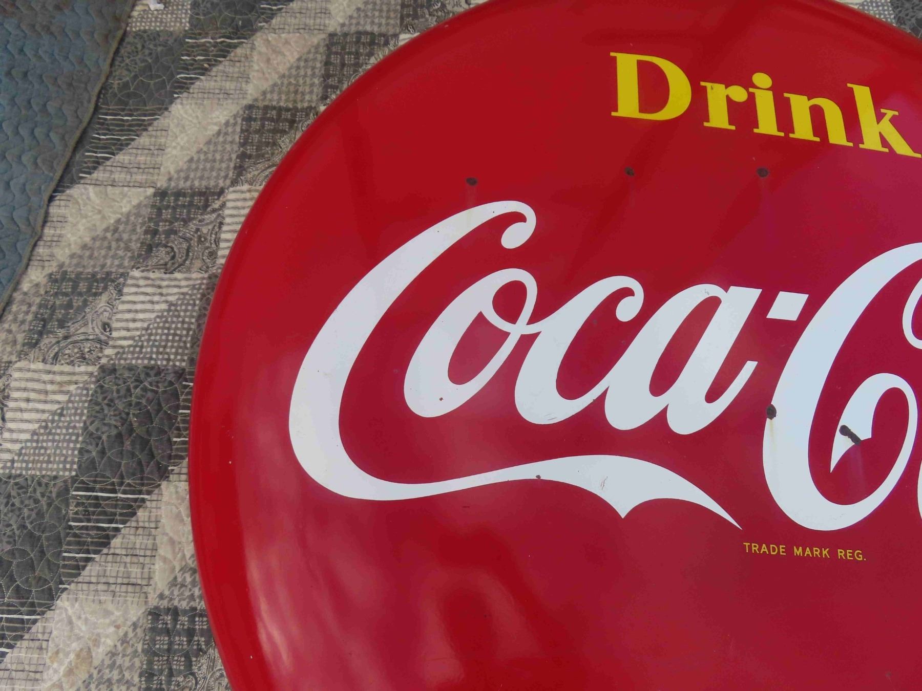 1956 Coca Cola Porcelain 48'' Round Sign with Original Hanging Brackets
