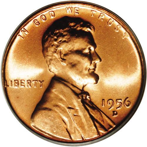 <B>1956-D<1C> MS67 Red PCGS.</B></I> Ex: Omaha Bank Hoard. The advanced Set Registry collector will want to know that this delightful cent is tied for the finest certified by PCGS. Both sides have that lovely pale orange color consistent with nicely preserved high quality cents struck half a century ago. Aside from a few natural planchet flakes that were present at the time this piece was struck, the surfaces are pristine. Population: 17 in 67, 0 finer (4/06).
