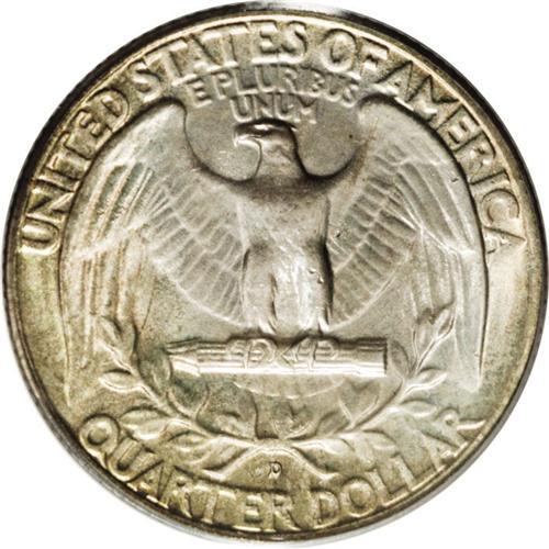 1956-D 25C MS67 PCGS. Iridescent gold, crimson, and li