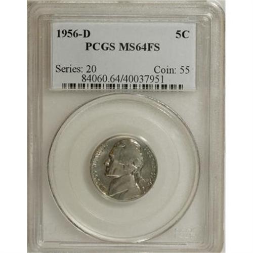<B>1956-D 5C MS64 Full Steps PCGS.</B></I> PCGS Population (10/25). NGC Census: (0/1). (#84060)<BR><BR><b>Shipping:</b> Coins & Currency (<a target="_blank" href="http://www.heritageauctions.com/common/shipping.php">view shipping information</a>)