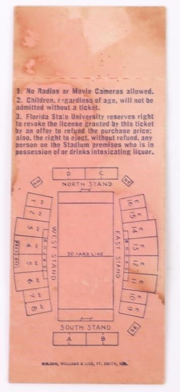 Florida State VS Wake Forest Homecoming game unused ticket dated October 20, 1956. Great piece of FSU History!