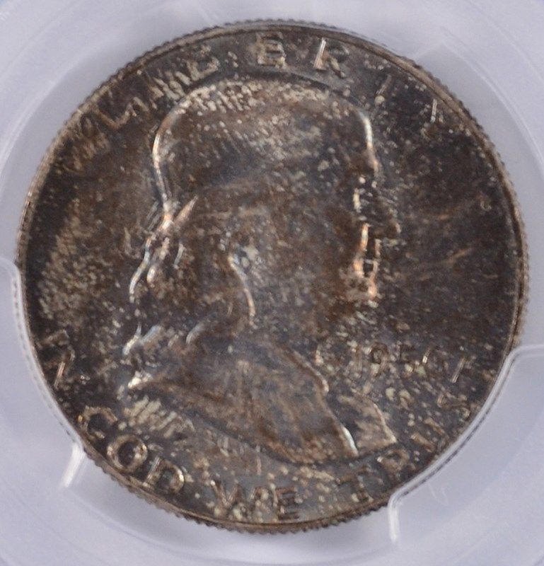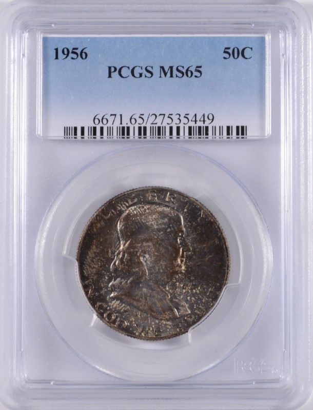1956 FRANKLIN HALF DOLLAR, PCGS MS-65 TONING ON OBVERSE