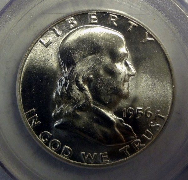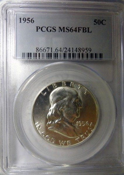 FULL BELL LINES ON THIS FRANKLIN HALF DOLLAR WITH TONS OF LUSTER, EST. $55.00 TO $65.00