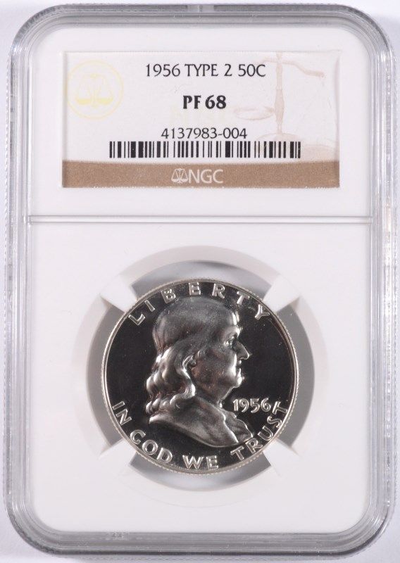 1956 FRANKLIN HALF DOLLAR, TYPE-2, NGC PROOF-68!