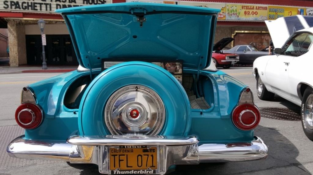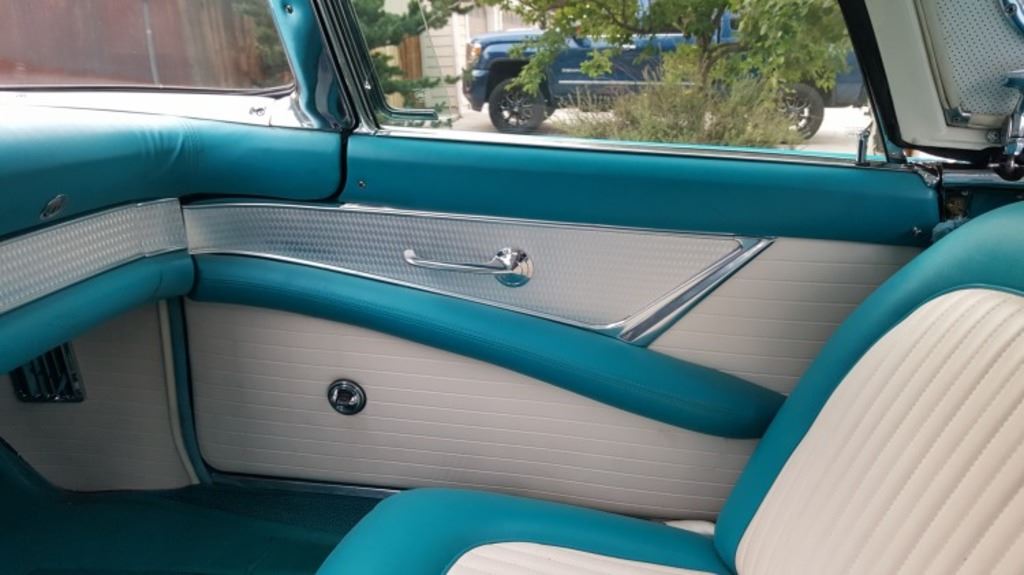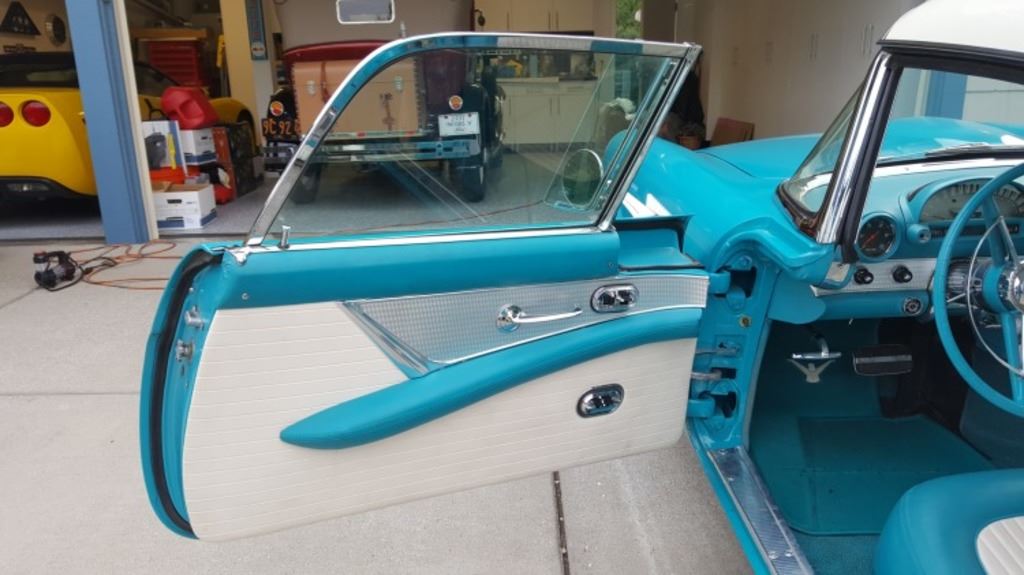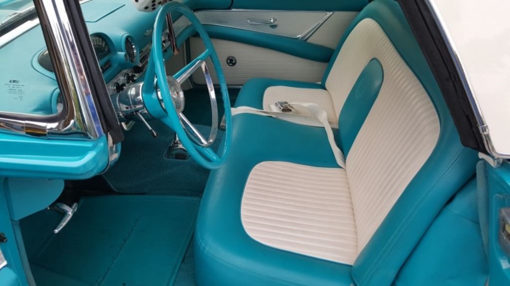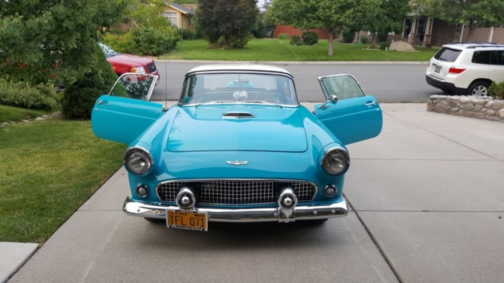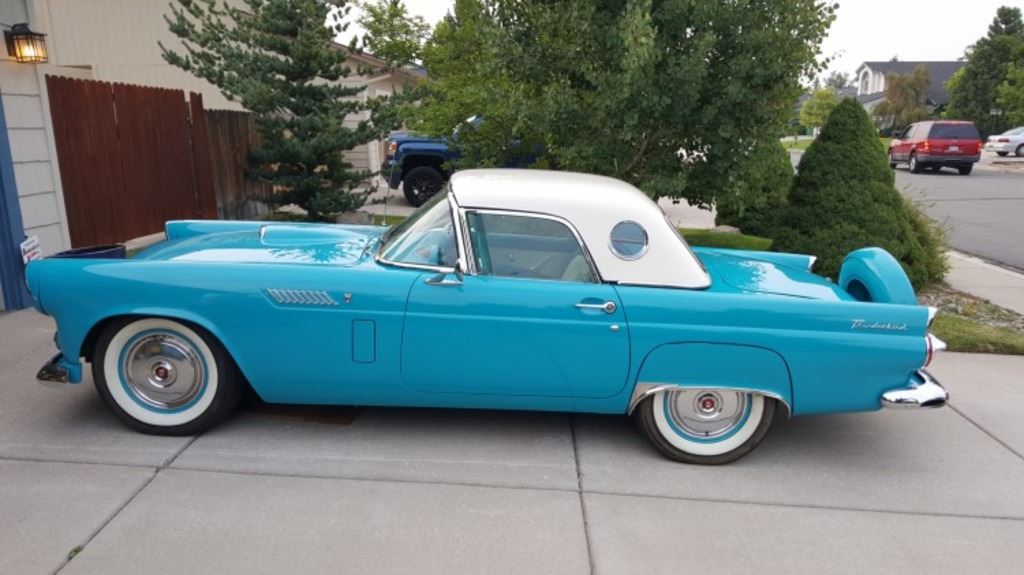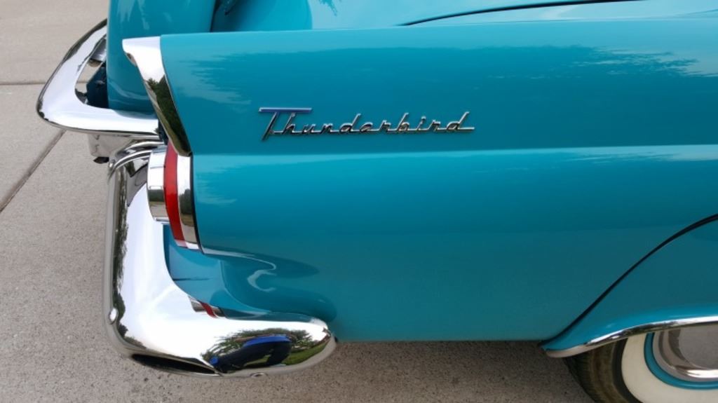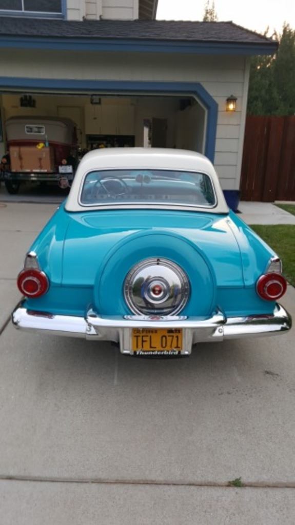 Frame-off restoration took several years - Completed in 2003. Pictures included. Partial parts list. Restoration invoices.Mom picked the color - a favorite.. 2004 Winning Participant 1956 Thunderbird - Scotts Valley. Got the right parts, just needs some care to bring it back up to show standards.. Ford 312 engine. Automatic. Power brakes. A/C. White hard top with Port Holes. White soft top brand new - needs adjustment. Continental Kit. Dual exhaust routed out ends of bumper. Fender skirts. Rust free body, straight frame. Been garaged in high desert, California