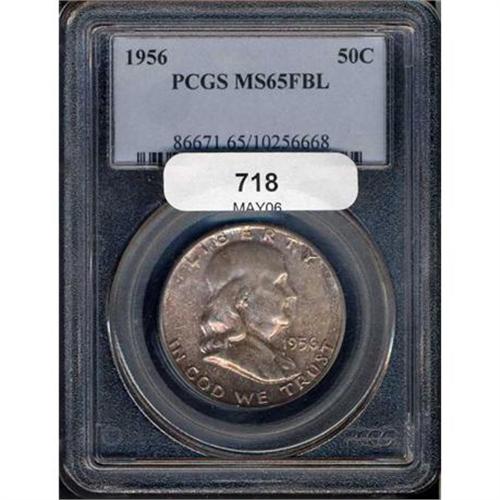 <b>1956 Franklin Half Dollar. PCGS graded MS65 FBL.</b> Toned. A well struck example of the date <b>(PCGS # 86671)</b> <i>