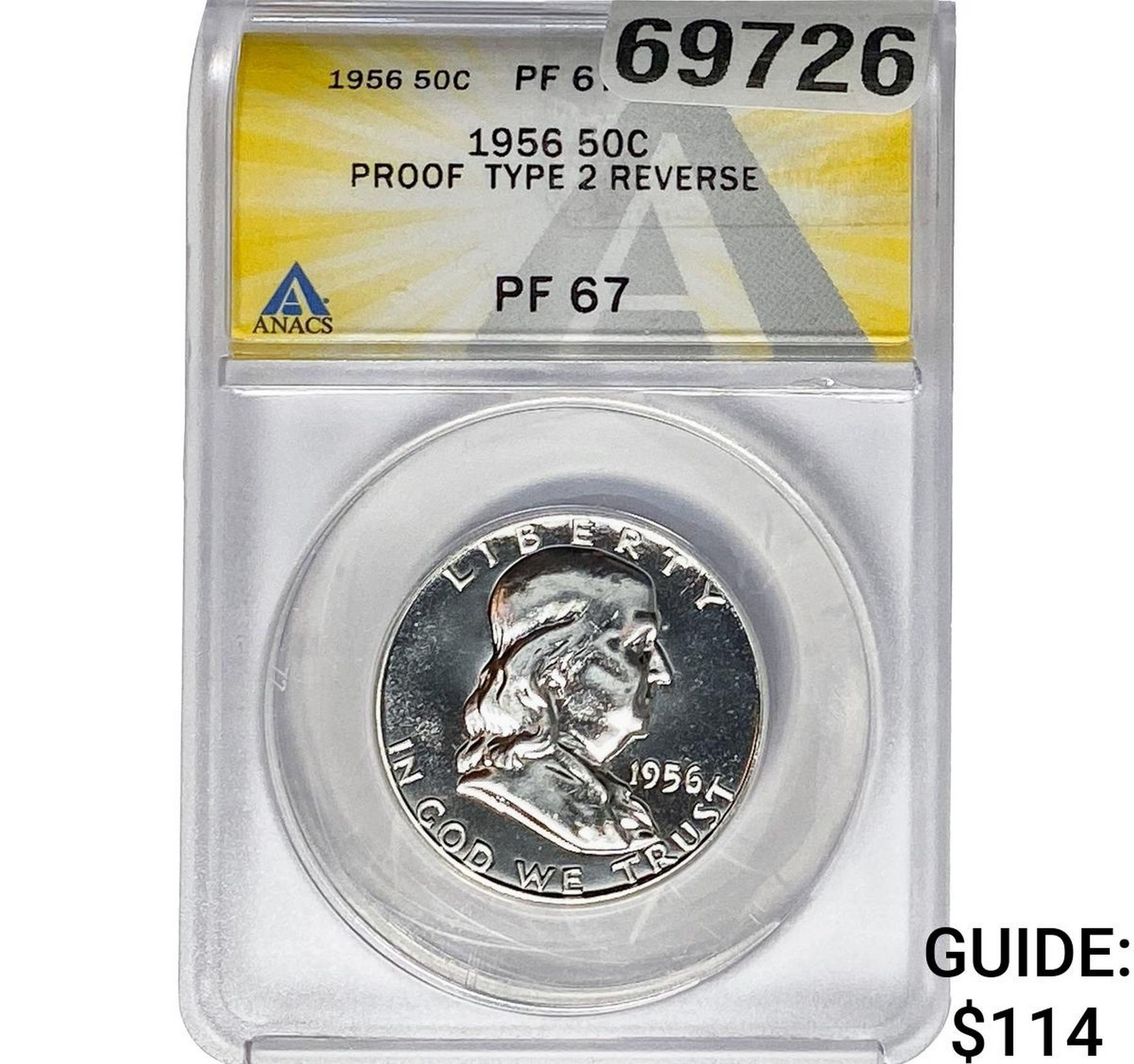 1956 Franklin Half Dollar ANACS PF67 Proof Ty2 Rev.